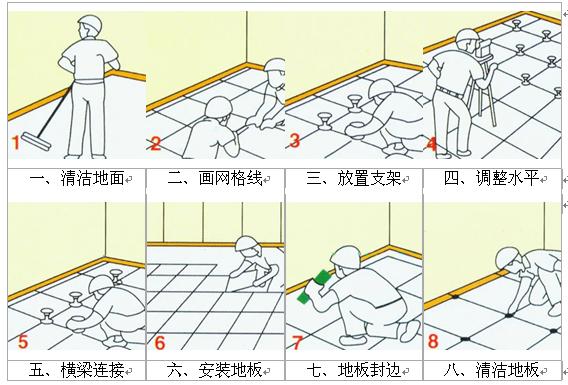 系統(tǒng)組裝由地板、橫梁、支座組成。橫梁和自身高度可調(diào)的支座用螺釘連結(jié)成穩(wěn)固的下部支承系統(tǒng),地板鑲嵌入桁梁圍成的方格內(nèi)