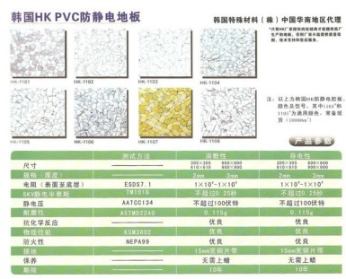 防靜電地板步感舒適、防霉抗菌、防滑、隔聲防腐、色彩豐富;極好的耐磨、防水、防火、防腐蝕和防化學(xué)反應(yīng)性能。PVC防靜電地板均勻的導(dǎo)電材料,PVC防靜電地板具有永久導(dǎo)電的性能。PVC防靜電地板規(guī)格統(tǒng)一,顏色持久。PVC防靜電地板外觀似大理石,具有較好的裝飾效果,顏色可根據(jù)客戶具體的愛好訂做。