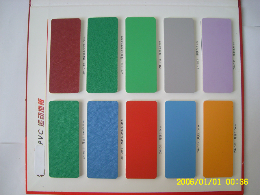本公司pvc塑膠地板為卷材,產(chǎn)品顏色、紋路、厚度多樣,有3.5mm-4.5mm的紅色、綠色、灰色、黃色、湖藍(lán)色、深藍(lán)色荔枝紋,3.5mm天藍(lán)光面、4.5mm楓木紋、4.5mm砂礫紋、4.5mm水晶砂等。