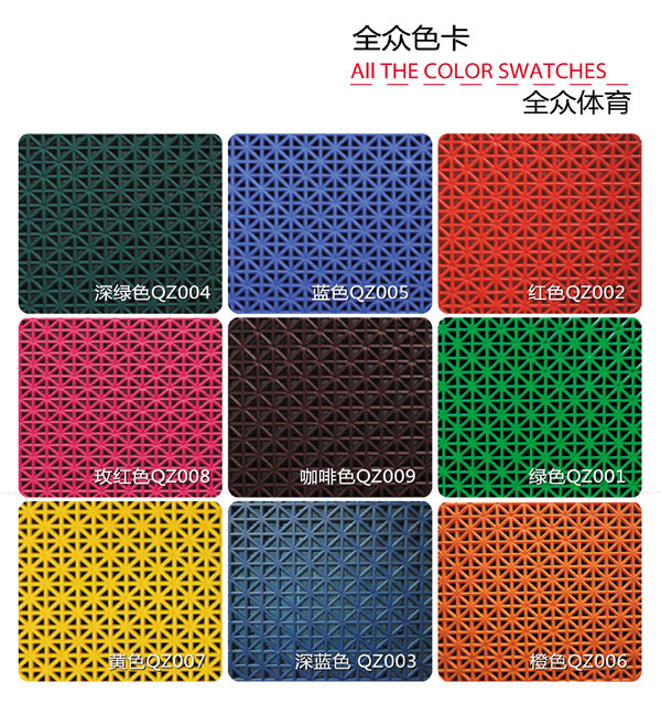 1、多功能性:籃球、網(wǎng)球、排球、羽毛球、乒乓球、室內(nèi)足球場、手球、健身館、幼兒園、娛樂廣場、公園、老年人活動場所等,只需平整的水泥或?yàn)r青地面即可使用鋪設(shè);